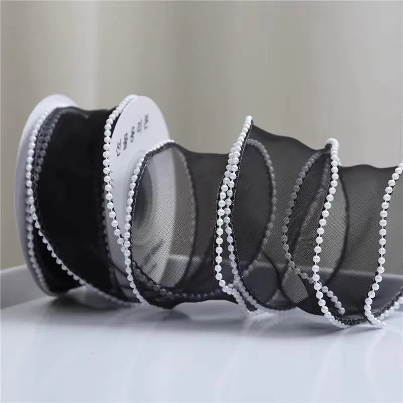 1.5 Inch Organza Ribbon with Beads Wavy Edge Ribbon For Flower Bouquet Gifts Packaging Wedding Party Decoration Sewing Supplies DIY Craft