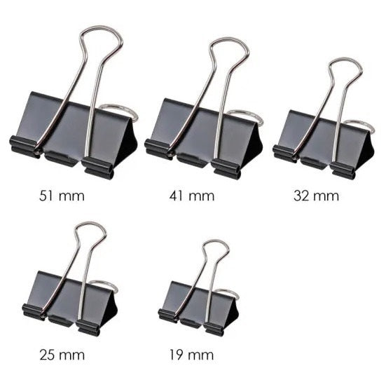 Pack of 12 - Binder Clip 19mm - 25mm - 32mm - 41mm - 51mm Paper Clip